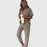 Suchst du nach einem Outfit, das dir nicht nur Stil verleiht, sondern auch den ganzen Tag über Komfort bietet? Unser Clarissa-Set ist die perfekte Lösung für die moderne Frau, die Eleganz und Bequemlichkeit schätzt.
