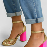 אנו מציגים את סנדלי מילביאנה הקלאסיים עם רצועת קרסול ואצבעות פתוחות, היכן שהזוהר פוגש את sophistication. בעבודת יד מדויקת עם תשומת לב לכל פרט, הנעליים המהממות הללו זמינות בצבעים נועזים ומודרניים, מה שהופך אותן לאביזר המושלם להרים כל מלתחה. הגוונים העזים של הנעליים הללו מבטיחים שתבלטי בכל קהל, בעוד שהרצועות הזהובות מוסיפות נופך של פאר להופעה שלך.