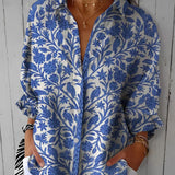 פרדריקה - בלוזה בגינה כחולה מביאה יופי נצחי לארון הבגדים שלך עם מוטיב פרחים וציפורים מפורט בגווני כחול בולטים על רקע שמנת רך. אלגנטית אך רב-תכליתית, היא מושלמת הן לאירועים יומיומיים והן לאירועים חצי-פורמליים, ומציעה מראה שיקי שמעולם לא יוצא מהאופנה.