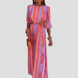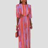 מציגים את שמלת פלאומה אלגנטית עם חיתוכים — יצירת מופת של נשיות מודרנית. נועדה להדגיש את האלגנטיות שלך, שמלה זו מתהדרת בסילואט מרהיב עם קווים מעודנים וקסם קיץ שאין להכחיש.