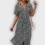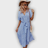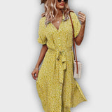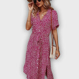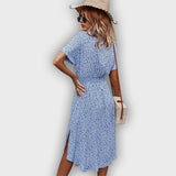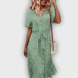 שמלת קיץ מידי קז'ואל עם מותן מתכווננת ועיצוב פרחים