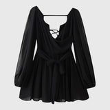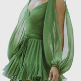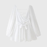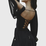 השרוולים הארוכים והחצי שקופים עם הפתחים העדינים מספקים מראה אוורירי ומוסיפים לאאוטפיט שלך אלגנטיות עדינה.