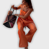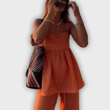סט קיץ דו-חלקי עם טופ ומכנסיים רחבים - מראה אלגנטי ונינוח