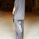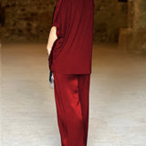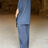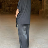 גזרה מאורכת: המכנסיים הרחבים מאריכים את הגוף ומעניקים מראה אלגנטי בכל צעד. הם יושבים גבוה על המותניים ומעצבים את אזור הבטן מבלי להיצמד. הגזרה הזורמת מאפשרת לך להרגיש בנוח ובו בזמן אלגנטית.