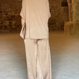 גזרה אלגנטית: זרימה ואלגנטיות נפגשים בשני פריטים אלה, המתאימים את עצמם לתנועות גופך תוך שמירה על נפילה מחמיאה. בין אם את מטיילת בעיר או נפגשת לארוחת ערב, הם יתאימו לקצב שלך. פריט חובה לימים שבהם את רוצה להרגיש חופשייה אך מסוגננת.