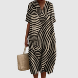 חוו את השילוב המושלם של אמנות ועידון עם שמלה נוחה זו.