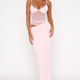 פרטי רשת מחמיאים: שמלת אייזלינגכוללת מותניים מרשת שקופה המדגישה ומגדירה את פלג הגוף העליון. עיצוב זה מעניק אפקט מפוסל, המדגיש את הקימורים בעדינות ובשקיפות. הוא מוסיף מגע שיקי תוך שמירה על גזרה מחמיאה ומחוטבת.