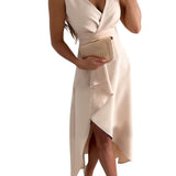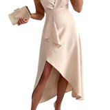 עם צווארון V אופנתי וחריץ נועז, שמלה זו היא הבחירה המושלמת שלך לכל אירוע שבו את רוצה לזרוח בסגנון בעונה הזו.
