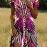 שדרגי את מלתחתך עם שמלת קיץ מדהימה זו, שנוצרה כדי להרשים עם גזרה רפויה, שרוולים קצרים, גימור אחיד ובד קל משקל עם שולי מתרחבים. זו השמלה המושלמת לך לרגעים מזדמנים או רב-תכליתיים.