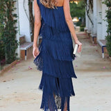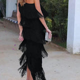 הפרנזים מוסיפים תנועה ואלגנטיות ללוק שלך, בעוד שהמחשוף הא-סימטרי חושף כתפיים ומעניק מראה מתוחכם במיוחד. שמלה זו אידיאלית לאירועים מיוחדים או ליציאה לילית, והיא תגרום לך לזרוח, להיראות אופנתית ולהבליט את היופי הטבעי שלך בנגיעה חושנית.