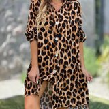 Nikoletta - שמלת חולצה אלגנטית עם הדפס מנומר