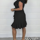 Tansy - שמלתצווארון V נושמת עם מחשוף V ומותניים גבוהים